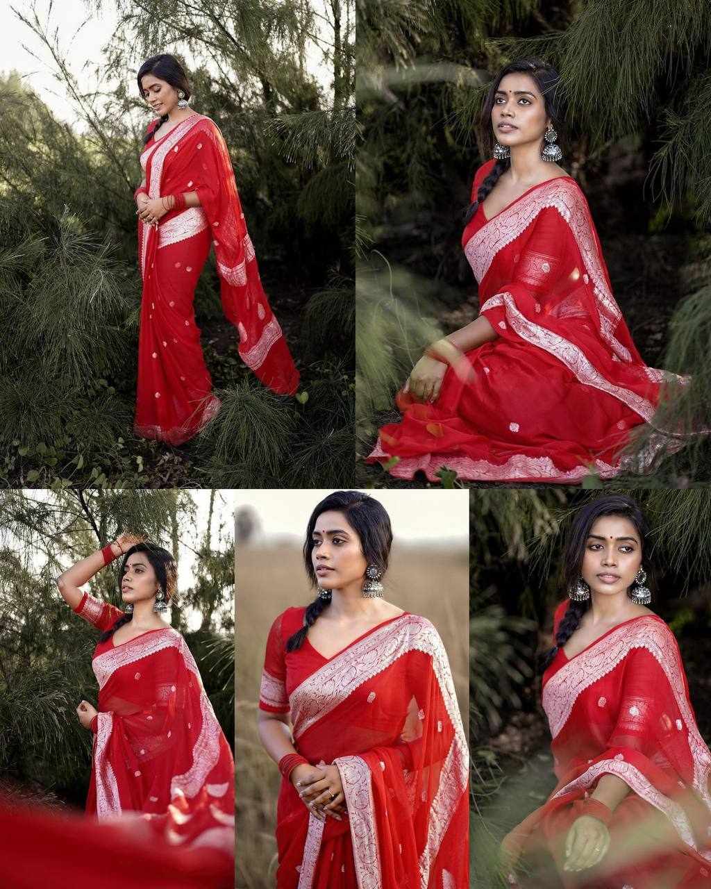 KP-R 120 BEAUTIFUL SOFT LILAN Red Saree