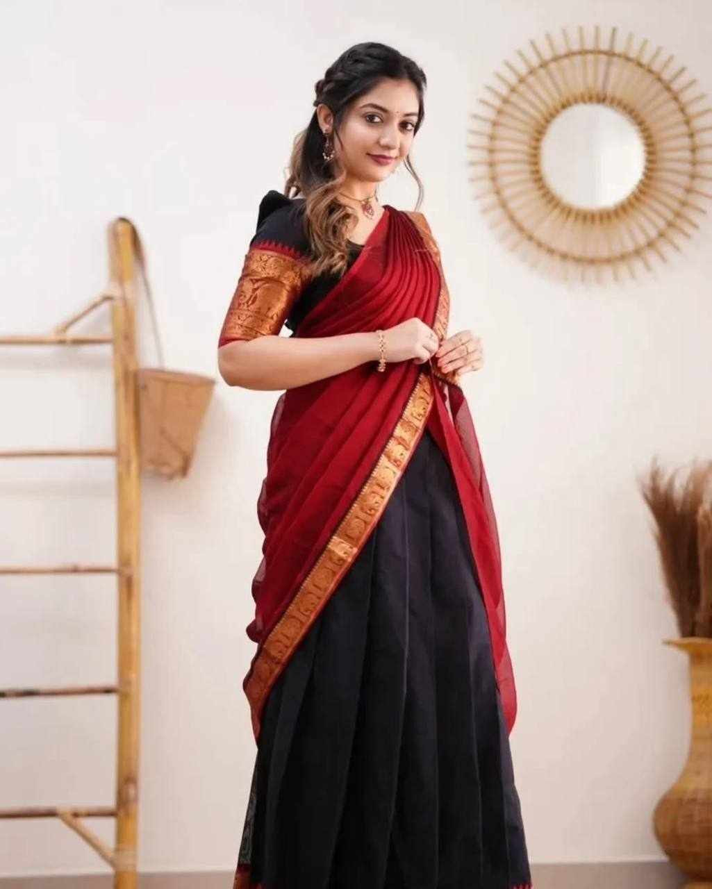 Blouse : 1 Meter Approx With Banarashi Silk Zari Work (Unstitched)